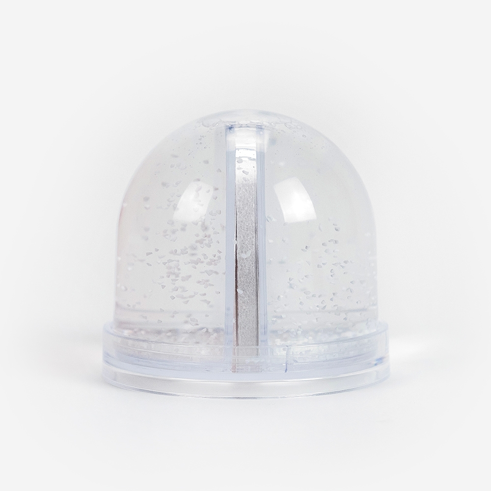 O Foto Globo é feito de plástico duro transparente e apresenta uma dimensão de 9 x 8 cm. As fotografias são impressas e isoladas do líquido interior.